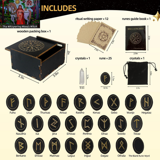 Runes, Wooden Runes Set with Guide Book, Healing Crystals, Ritual Paper, Tarot Bag, Witch Runa for Beginners, Witchcraft/Divination/Meditation/Spiritual