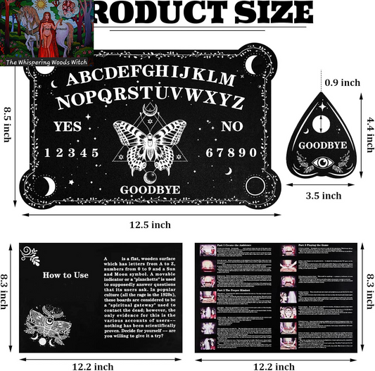 Pendulum Dowsing Divination Board with Amethyst Set Wooden Spirit Talking Board Metaphysical Message Crystal Pendulum Necklace with Planchette for Wiccan Supply(Butterfly Style)